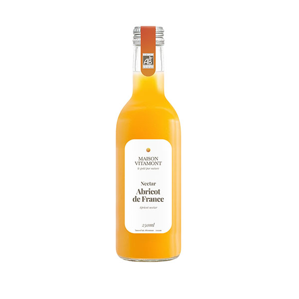 Découvrez la nouveauté Nectar abricot de France de Maison Vitamont, un jus fabriqué a base de fruits 100% bio sans scures ajoutés ni conservateurs.