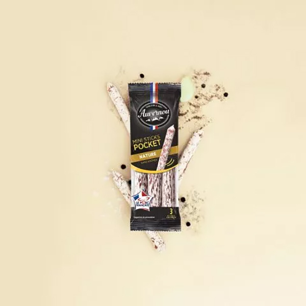 Découvrez Les Mini Sticks Nature Auvernou, issus de viande de porc 100% français, ils sont une véritable invitation à la gourmandise en solo ou en apéro avec les collègues.