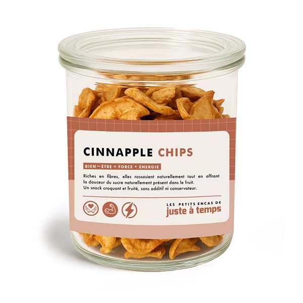 Envie d'un snack sain et original ? Découvrez nos Cinnaple Chips, de fines tranches de pomme croustillantes subtilement parfumées à la cannelle. Une alternative naturelle et gourmande aux snacks traditionnels !
